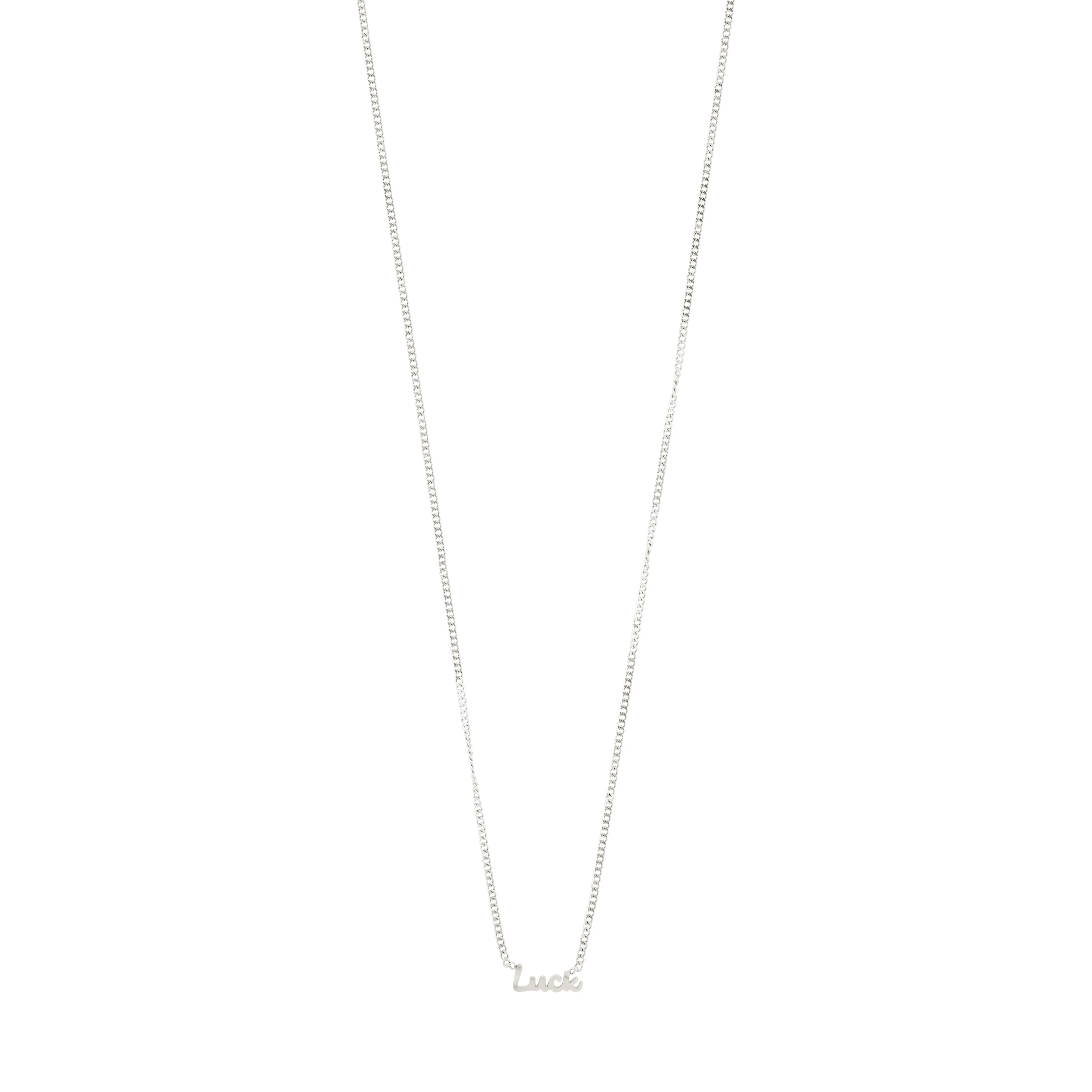Reflect your love and wear your mantra with pride! With your new signature piece, you get a sleek, gold-plated or silver-plated necklace with a small pendant in cursive script with the word 'LUCK'. A genderless piece, that can be worn by anyone, and a great gift idea for a loved one. Wear it solo or layer up for a personalised look. No matter how you choose to style the chain, which measures 38 cm + 9 cm extension chain, it's a must-have in your daily wear collection. The necklace is made of 75% min. recycled material with consideration for our shared planet.